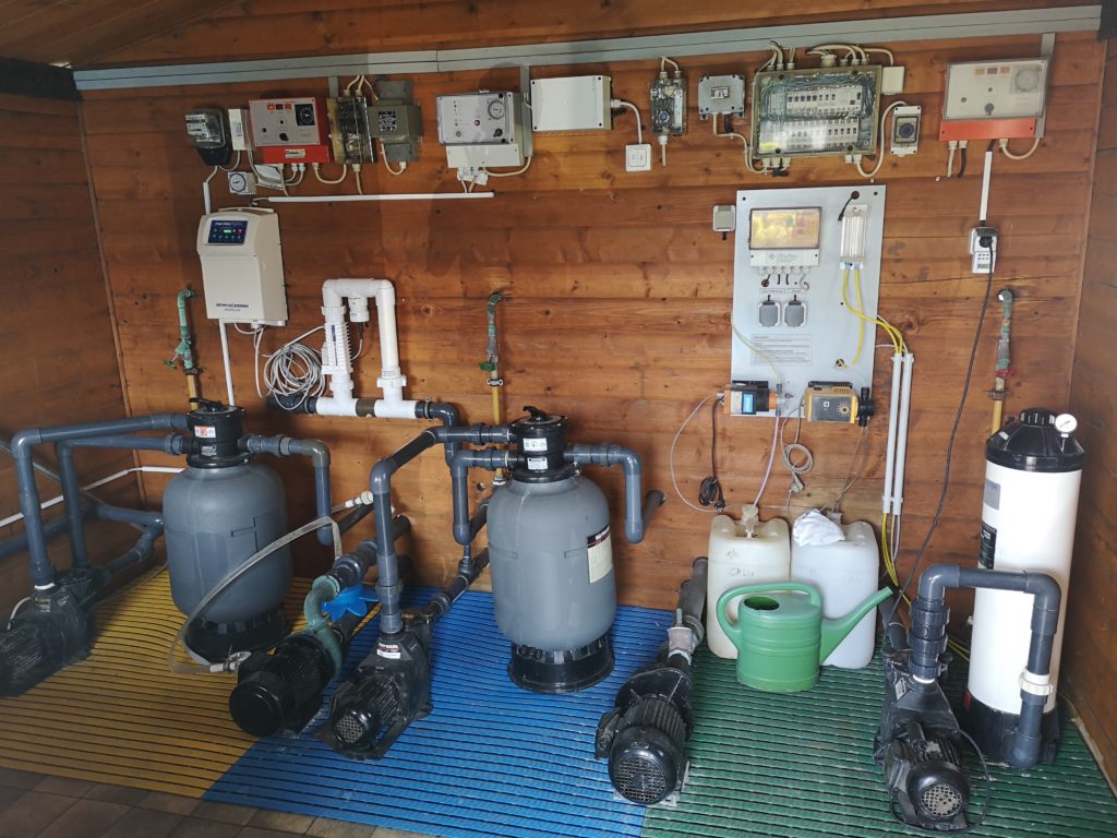 Der Sandfilter ist der häufigste und kosteneffektivste Filtertyp. Er entfernt Schmutz und Verunreinigungen aus dem Wasser, indem er das Wasser durch eine Schicht aus Sand leitet. Der Sandfilter sollte regelmäßig gereinigt und der Sand alle paar Jahre ausgetauscht werden.